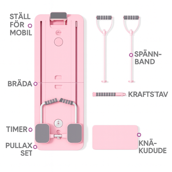 Upptäck nästa nivå av hemmaträning med Scandicareswe CoreFlex Pilates Board – det ultimata multifunktionella fitnessredskapet för dig som vill bygga styrka, förbättra hållning och få effektiv träning utan att lämna hemmet. Med kombinationen av Pilates, abdominal wheel, sit-up bräda och mångsidig träningsstation får du ett kompakt verktyg som täcker hela kroppens behov.